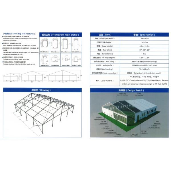 The clear-span of tent is from 3m to 40m, the length could be 6m, 9m, 12m, +3m more or 10m, 15m, 20m, and +5m more. And the length of our tent is no limited. Customized size can also be available.